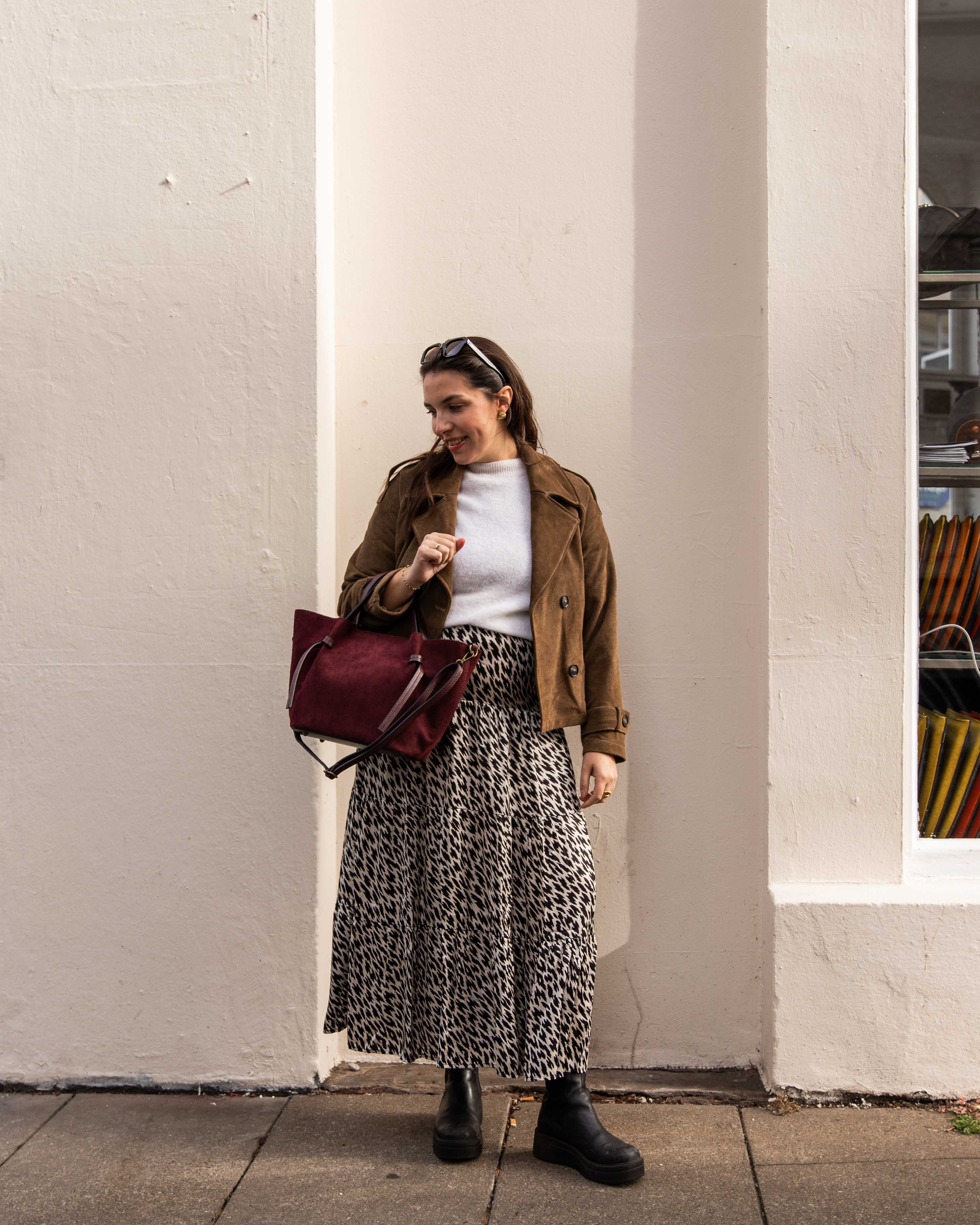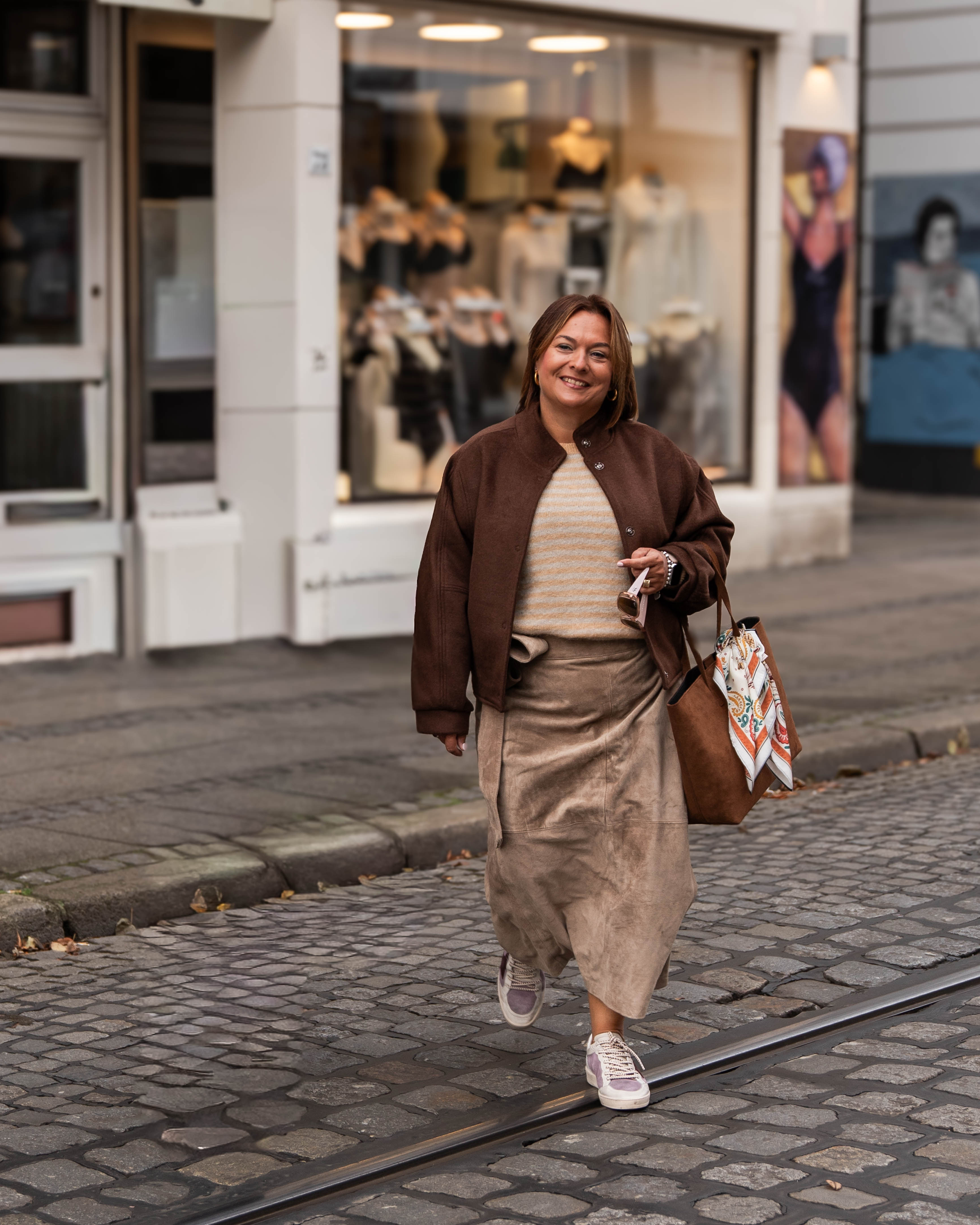 Alles was du für die Übergangszeit brauchst: Leder, Maxiröcke, Strick und die Trendfarben Braun und Berry.